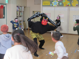 保育園にも鬼がやってきたので、みんなで豆まきを行いました。